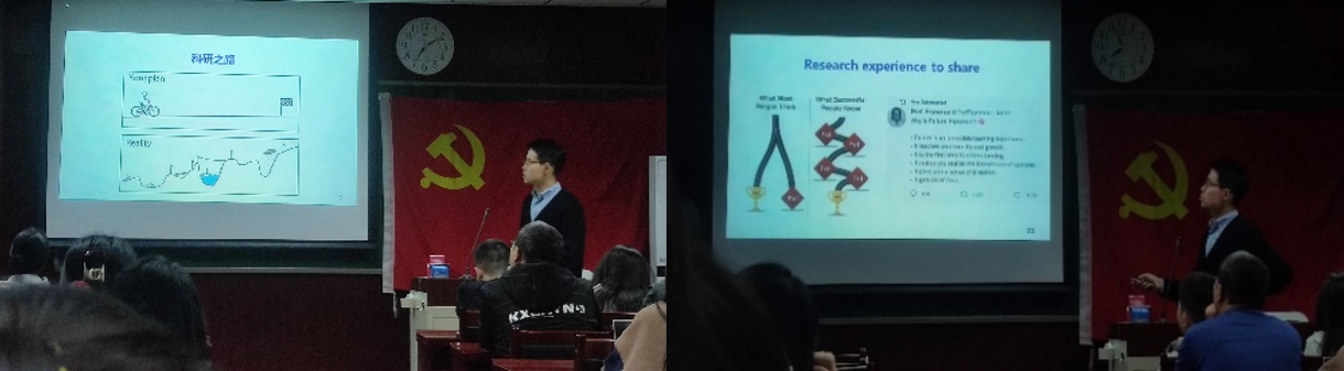 曹玮老师首先结合科研和留学经历讲述了自己身为学生阶段的所见所闻,其次描绘了由学生到青年教师身份转变的心路历程,以生动幽默的形式将自己宝贵的科研体会进行了分享。并表达了新青年一辈将坚持中国共产党的领导,坚定的跟随祖国的脚步,砥砺前行!参会的成员们也以饱满的热情与曹玮老师进行了面对面的交流与互动。