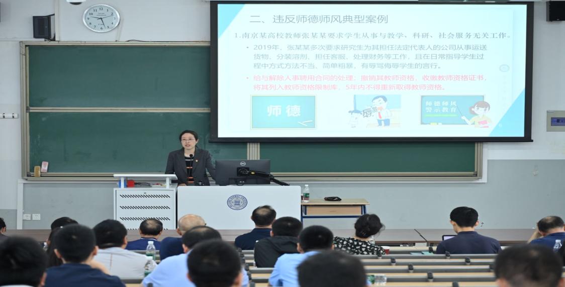 会议第一项议程是集体学习和警示教育。党委副书记马琼通过讲解违反中央八项规定精神典型案例、违反师德师风典型案例、违反科研经费管理使用典型案例,引导教职工深刻认识到严守纪律红线、筑牢师德师风的重要性。