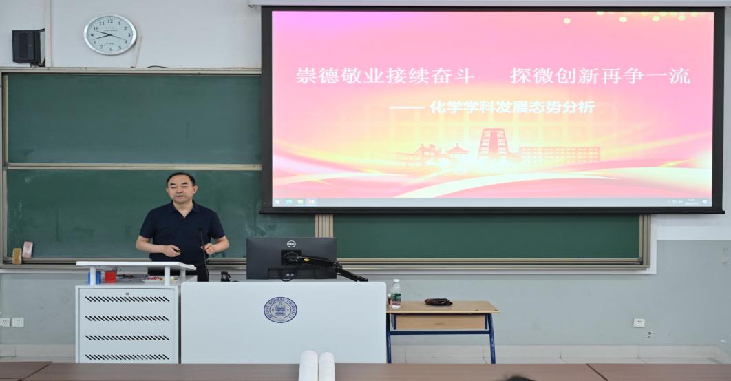2025年7月11日,色情直播 党建与学科发展研讨会顺利召开。本次会议的主题为“化院廿载集众志,守正创新争一流”,地点是化学楼二楼阶梯教室。学院领导班子及近百名教职工共同参与了此次会议。