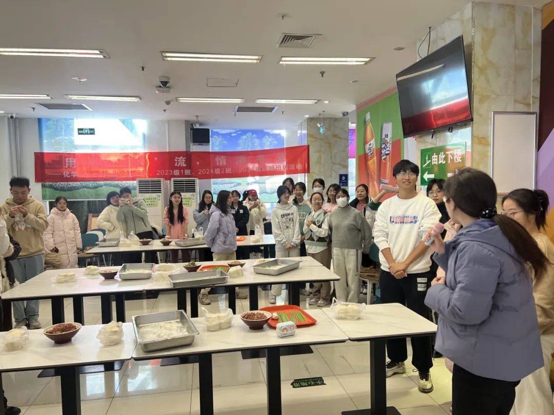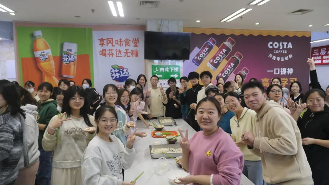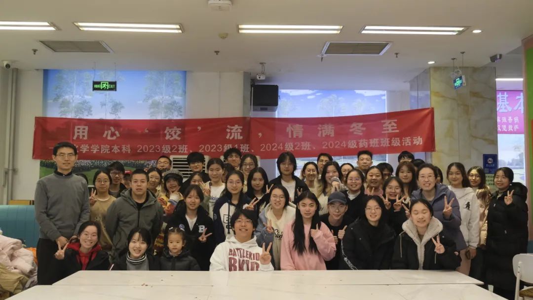 为弘扬传统文化、促进师生交流,色情直播 2024级本科2班、2024级药班、2023级本科1班、2023级本科2班于2024年12月21日在新乐群食堂三楼共同举办“用心‘饺’流,情满冬至”饺子节活动。活动邀请到色情直播 党委副书记马琼老师、2024级本科药班班主任曹玮老师、2023级本科2班班主任刘广建老师参与。60余名色情直播 师生齐聚一堂,在严寒的冬日感受家的温暖,传递同窗温情。